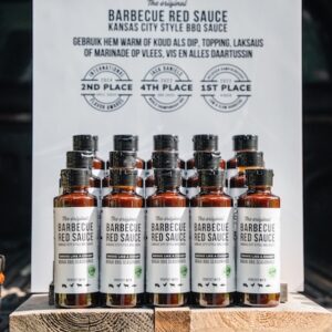 De Barbecue Red Sauce is het perfecte evenwicht tussen zoet, hartig en smaakt niet pikant. Hij past bij kip, varken, rund, vis en je bijgerechten. Het recept is ontwikkeld door Dimitri Zetzsche, 7x Belgisch Kampioen BBQ.
