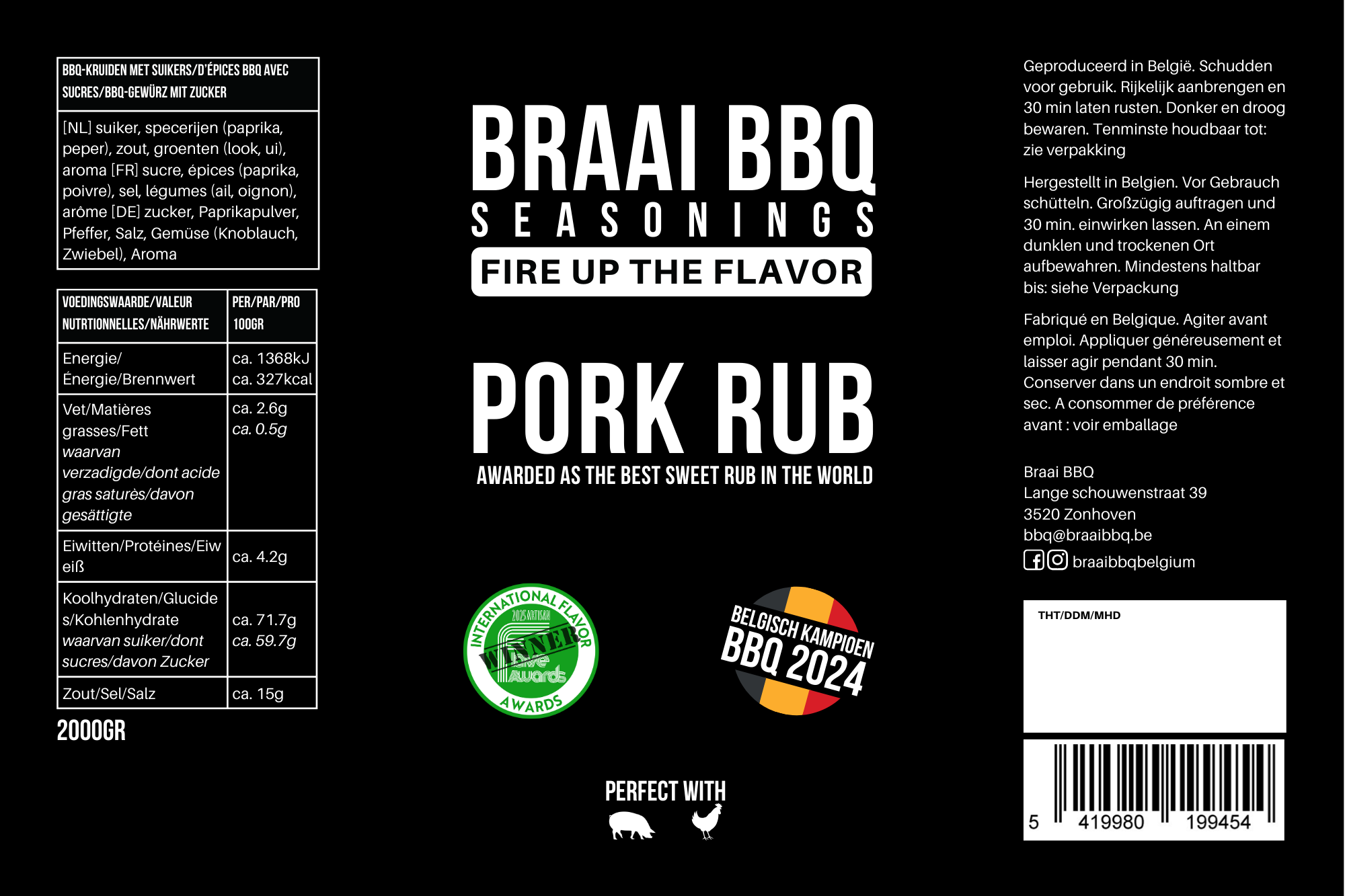 Deze rub is geïnspireerd op jarenlange competitie ervaring die wij in binnen en buitenland hebben opgedaan. De Meatpal heeft een zoete hartige smaak en is niet pikant en past daarom in ieders smaakpallet. Als allround BBQ rub past hij als smaakmaker vrijwel in elk gerecht (vb: smaakmaker in humus als dipsaus). Maar is uiterst geschikt voor varkensvlees en kip. Met deze rub behaalden we de 1ste plaats in het Belgisch Kampioenschap Low & Slow BBQ 2022 in de categorie ribben.
